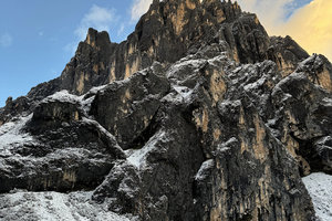 米加峰宛如一座从远古神话中走来的魔界城堡。其山势陡峭,垂壁犹如被神秘力量精心雕琢,黑色的基岩冷峻而深邃,散发着一种难以言喻的威严,恰似魔域中不可侵犯的堡垒。在阳光的照射下,山体偶尔闪烁出的微光,仿佛是来自魔界神秘魔法的光辉,为这座山峰增添了更多神秘色彩。